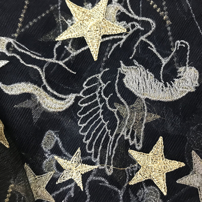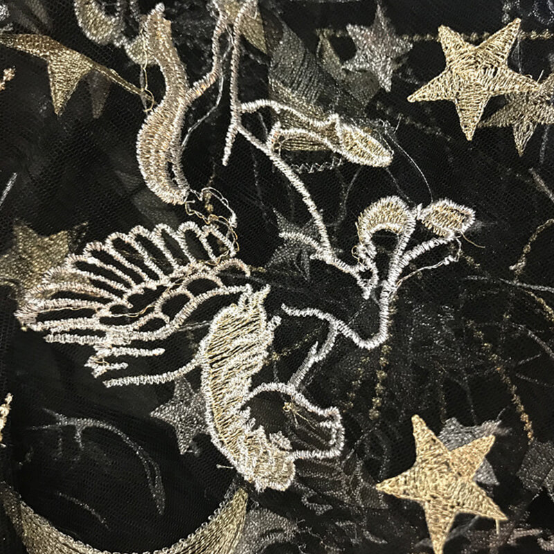Сетка объемная вышивка золотыми нитками перо вышивка ткань женская одежда аксессуары
