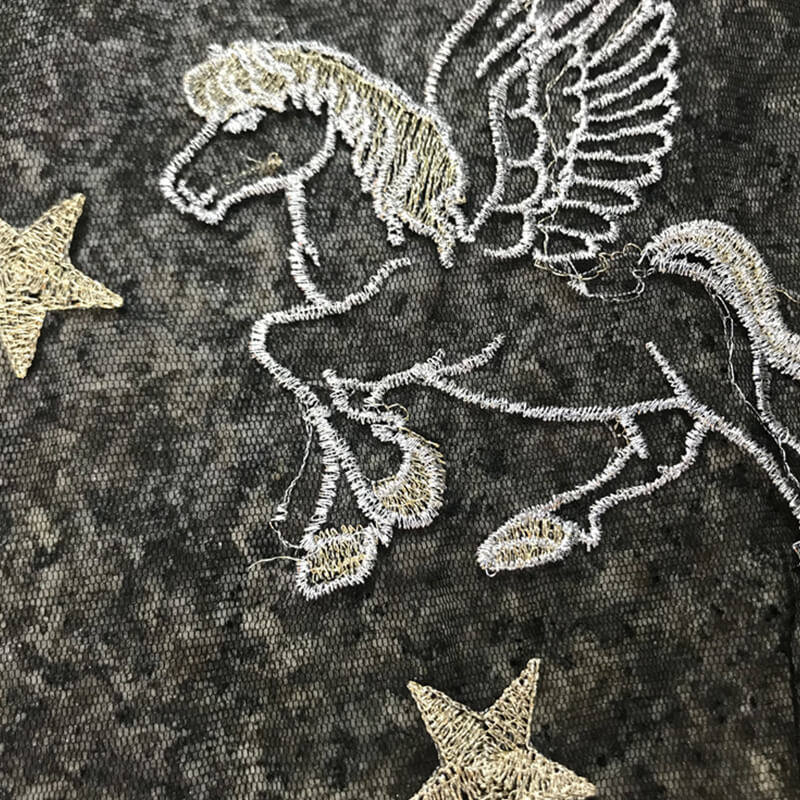 Вышитая нерегулярная сетчатая лазерная ткань с маленьким цветком