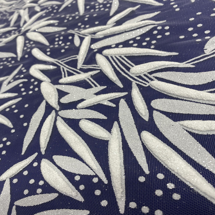 Лазерное сжигание трехмерных цветочных бусин с блестками, ткань для свадебного платья