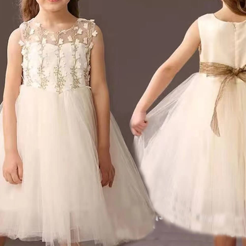 Сетчатая вышитая кружевная ткань Трехмерное цветочное платье для девочек Формальное платье Вышивка золотой нитью