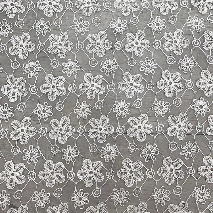 Водорастворимая белая хлопковая нить, сетчатая ткань с вышивкой, высококачественная детская одежда, женское платье, хлопковая кружевная ткань с вышивкой