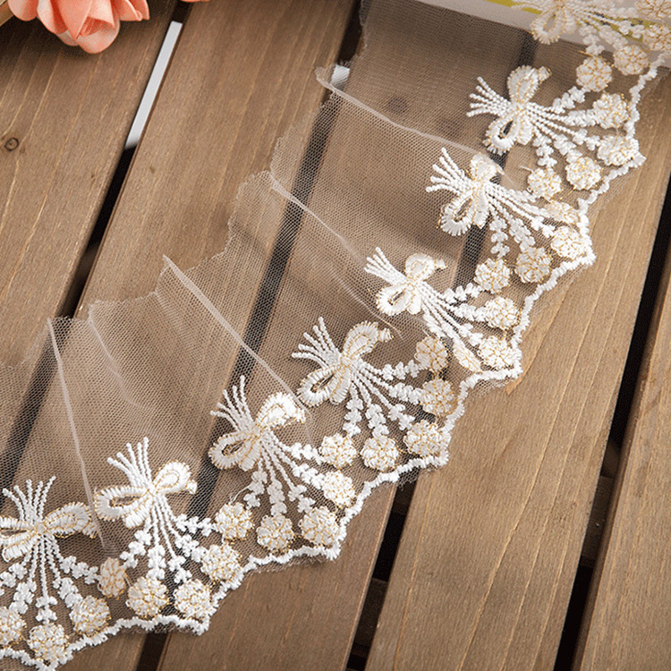 Кружево в стиле Лолиты, новое кружевное украшение с бантом, вышивка, кружевное украшение, ткань для свадебного платья