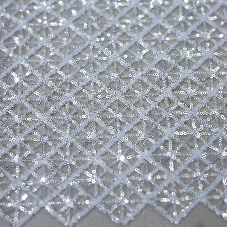 Высококачественная белая ткань для свадебного платья с бисером и блестками