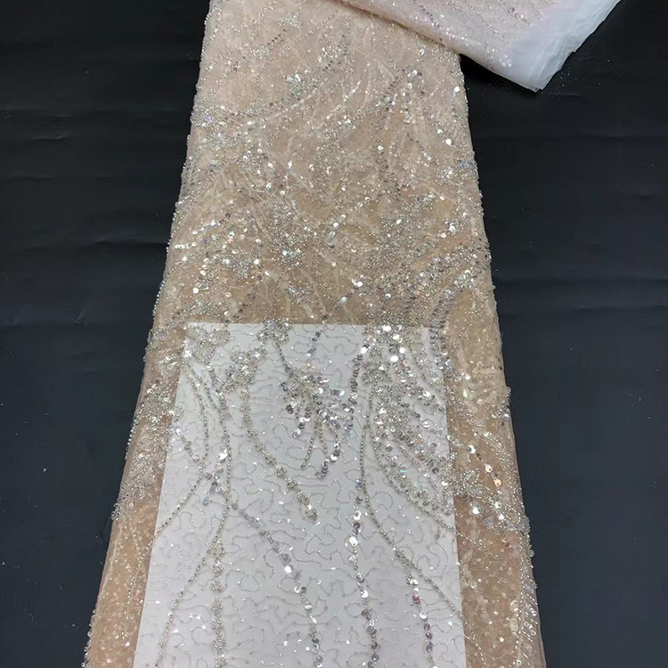 Высококачественная ткань для свадебного платья, расшитая бисером и блестками